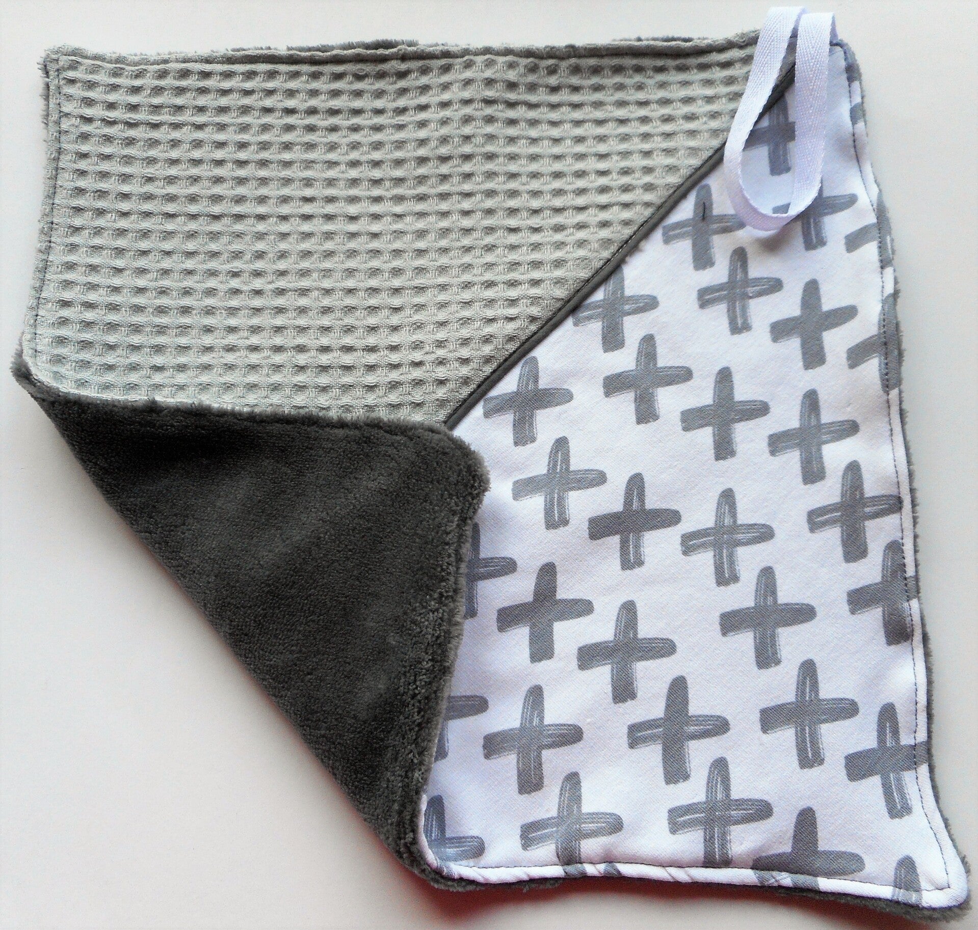 Donker grijze teddy - licht grijze wafel - wit met grijs kruis