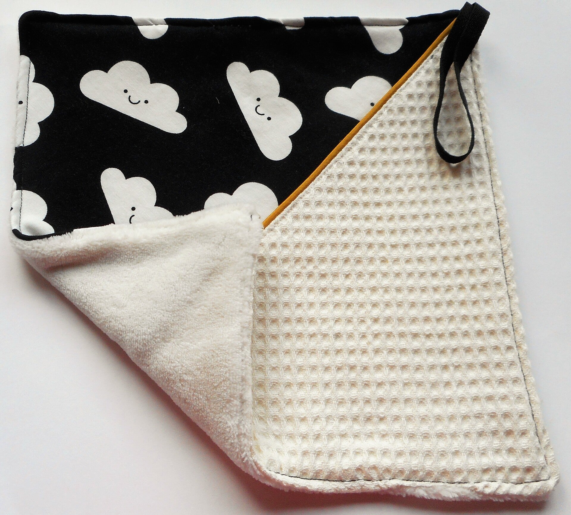 Speendoek altijd 1 zijde zachte teddy andere zijde bestaat uit wafel en een leuke print.