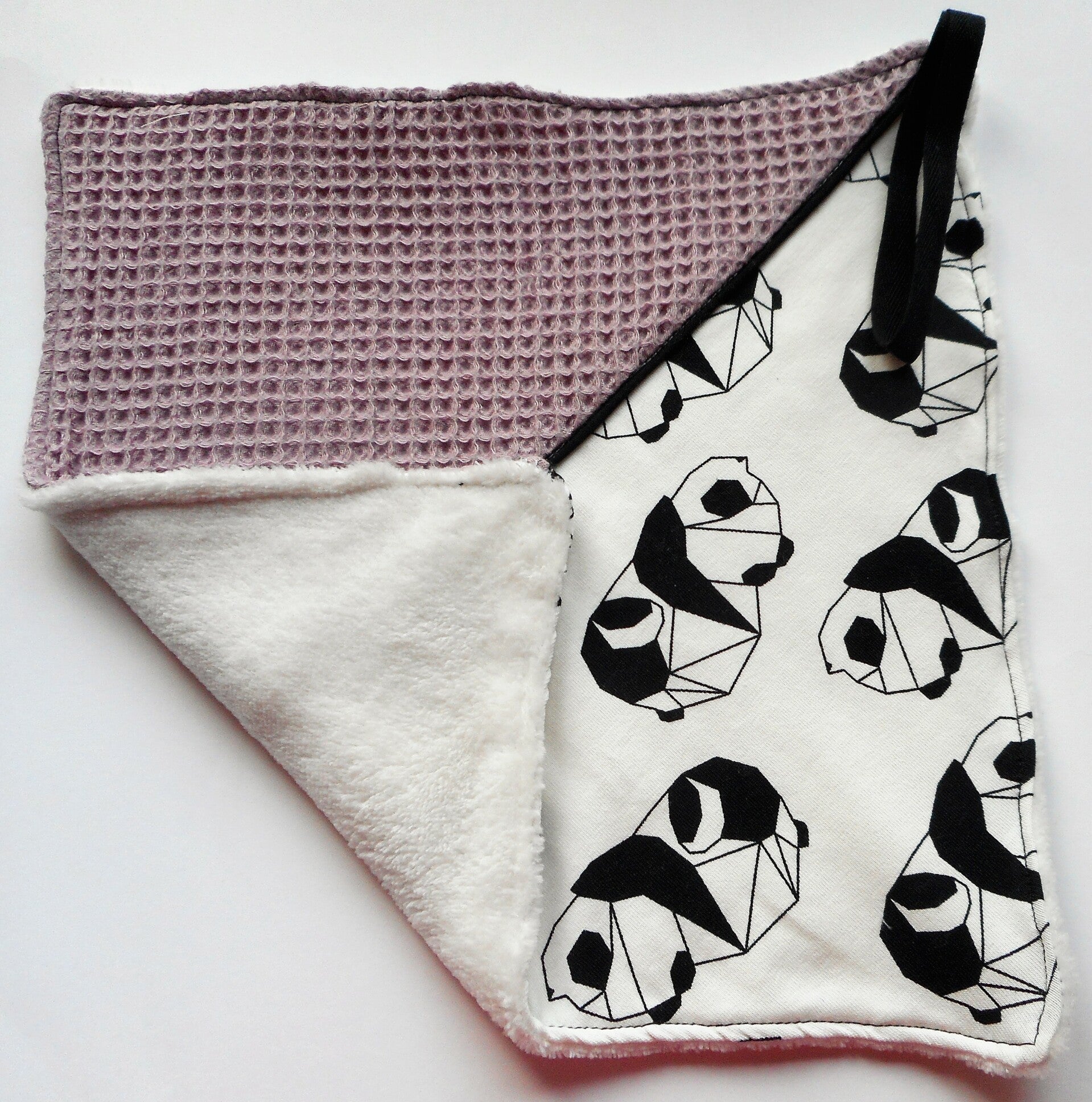 Gebroken witte teddy - oud roze wafel - gebroken wit met zwarte panda's